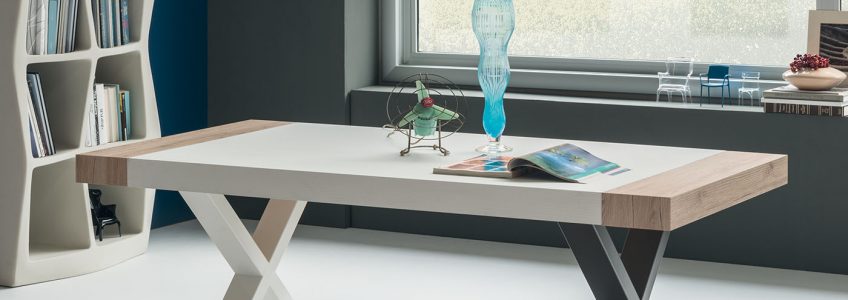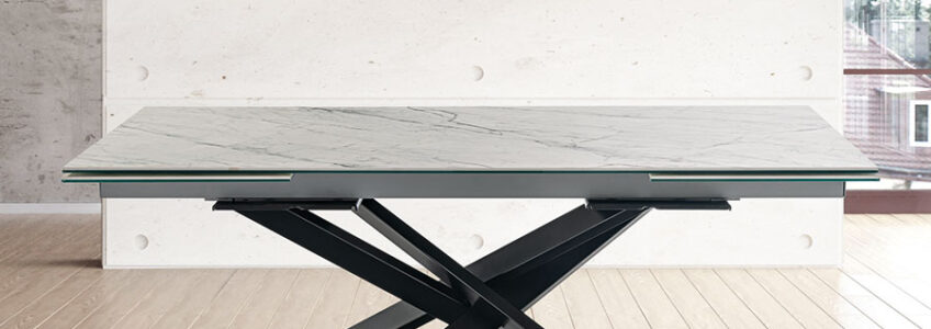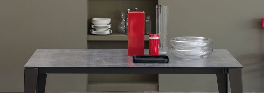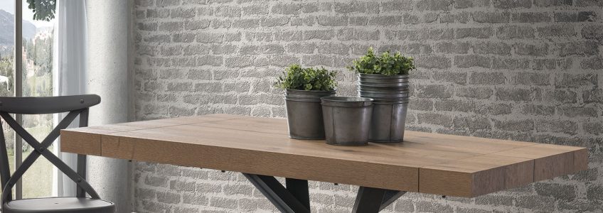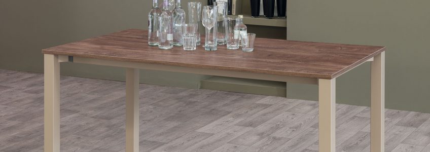 Tavolo con piano melaminico, Finitura Cemento, Finitura Legno, Pietra Bianca, Pietra Nera, Pietra Grigia